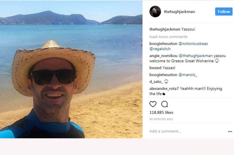 Έτσι την περίοδο αυτή βρίσκεται μαζί τη σύζυγό του στη Μύκονο, αφού πρώτα είχαν περάσει μια εβδομάδα στην Αντίπαρο. Ενθουσιασμένος από τη μέχρι σήμερα παραμονή του στο νησί, ο Hugh Jackman ανέβασε μια φωτογραφία από την παραλία στο instagram γράφοντας τη λέξη «Yassou» και κερδίζοντας όπως είναι φυσικό εκατομμύρια views και likes από τους followers του.