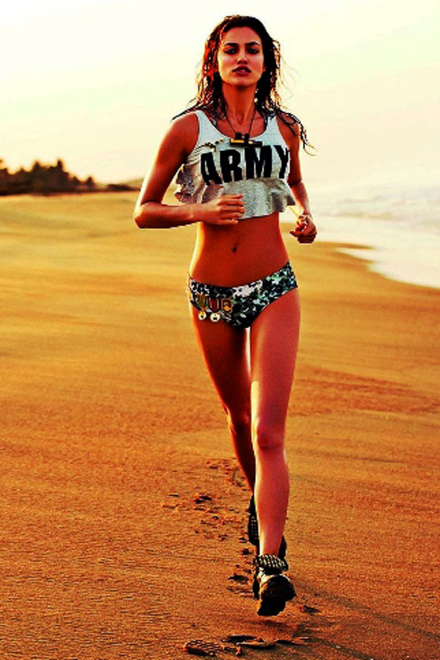 Με σαγηνευτικό βλέμμα το μοντέλο ποζάρει στο φακό για τις ανάγκες της διαφημιστικής καμπάνιας της εταιρίας μαγιό “Agua bendita”, δείχνοντας μας το καλλίγραμμο κορμί της και τις σέξι καμπύλες της.