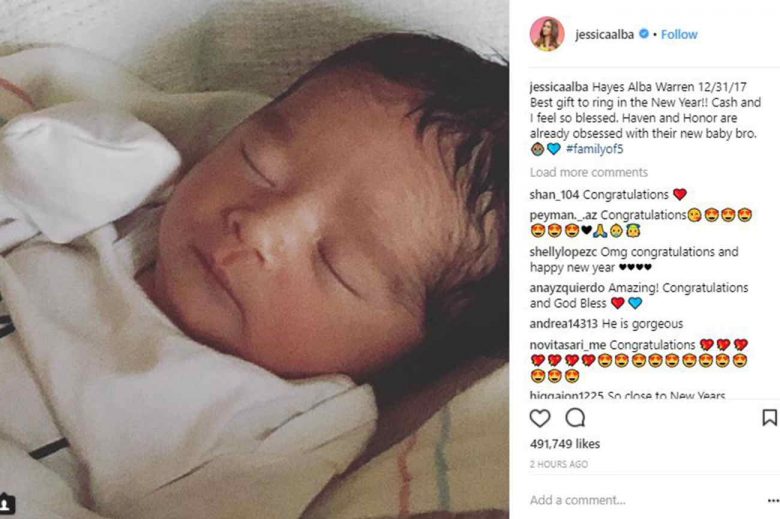 «Hayes Alba Warren 12/31/17 Το καλύτερο δώρο για να μπει ο νέος χρόνος! Ο Cash (Warren) και εγώ νιώθουμε τόσο ευλογημένοι. Η Ηaven και η Honor είναι ήδη ξετρελαμένες με το μικρό τους αδερφό» έγραψε στη λεζάντα με τη φωτογραφία του νεογέννητου γιου της η ηθοποιός.