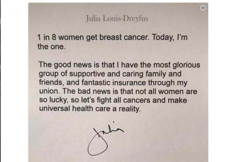 Mία συγκλονιστική αποκάλυψη για την υγεία της έκανε μέσω Τwitter η Julia Louis Dreyfus.
