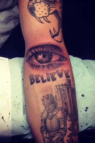 Ο διάσημος, νεαρός τραγουδιστής, ανέβασε αμέσως τη φωτογραφία στο προσωπικό του λογαριασμό στο Instagram, όπου δείχνοντας τον αριστερό του πήχη, μπορούσαν όλοι οι φαν του να δουν το μάτι της μαμάς του, μαζί με άλλου είδους «καλλιτεχνίες» όπως μια τίγρης , ένας ιππότης ή η λέξη «believe».