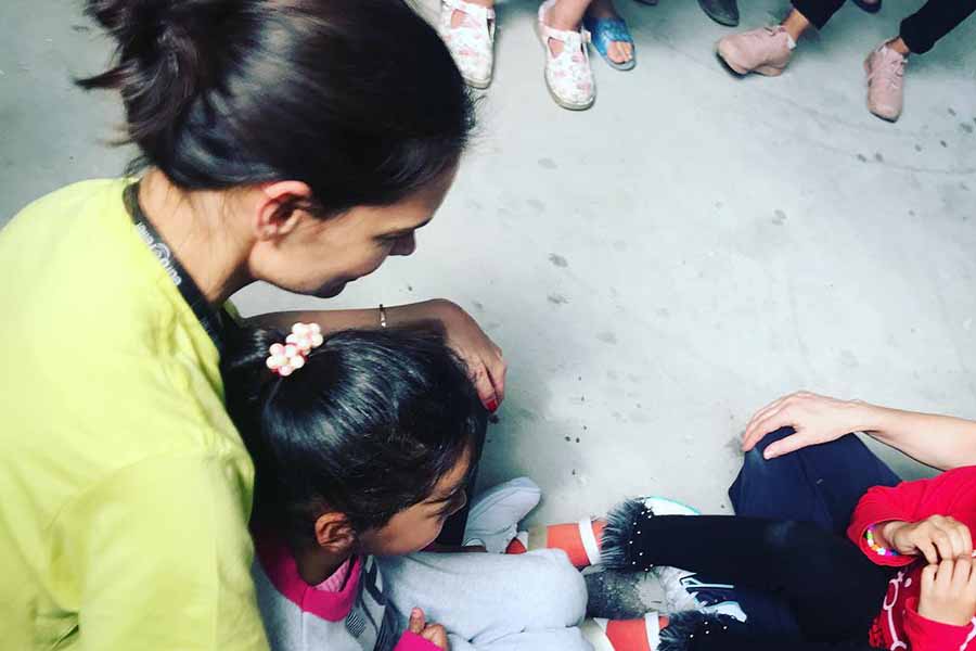 Η διάσημη ηθοποιός βρέθηκε στο πλευρό των ανθρώπων που αναγκάστηκαν να εγκαταλείψουν τις πατρίδες τους, έχοντας μαζί της την κόρη της Σούρη, καρπό του έρωτα και του γάμου της με τον πρώην σύζυγό της Tom Cruise.