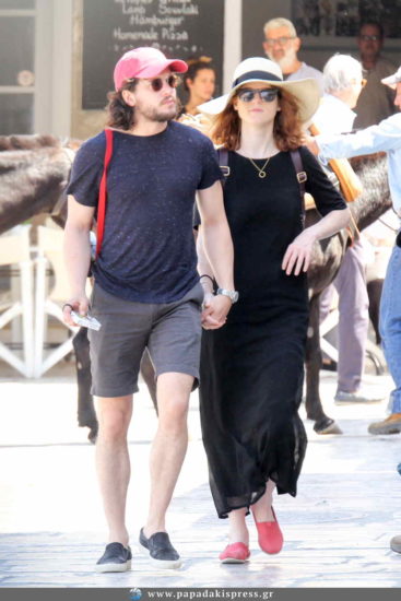 Το ζευγάρι, έπειτα, αναχώρησε για τη Σαντορίνη, όπου ήταν και ο τελευταίος προορισμός των διακοπών του. Ο Kit Harington και η Rose Leslie απόλαυσαν τις βόλτες στα γραφικά σοκάκια των ελληνικών νησιών και δε σταμάτησαν να βγάζουν φωτογραφίες με φανς της σειράς.