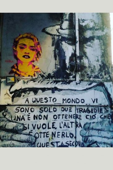 Η διάσημη τραγουδίστρια, μας εξέπληξε με μια από τις πρόσφατες αναρτήσεις της στο Instagram, καθώς επέλεξε να ανεβάσει μια φωτογραφία με ένα γκράφιτι που βρίσκεται στην Αθήνα και περιλαμβάνει το πρόσωπό της και μια φράση γραμμένη στα ιταλικά η οποία λέει: «Σε αυτό τον κόσμο υπάρχουν δύο τραγωδίες: Η μια είναι να μην παίρνεις αυτό που θέλεις και η άλλη να παίρνεις αυτό που θέλεις». Η λεζάντα που συνόδευε τη συγκεκριμένη ανάρτηση έγραφε: «Street art στην Ελλάδα!».
