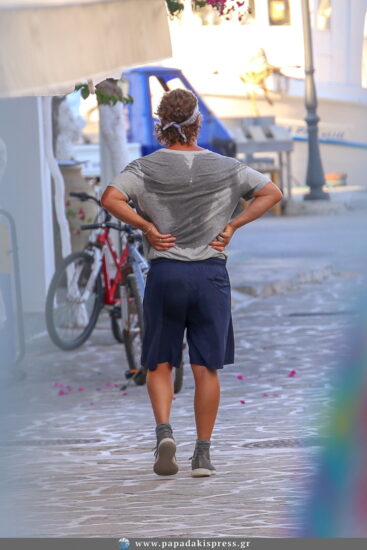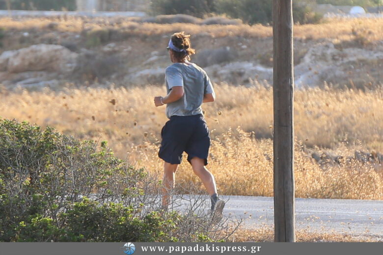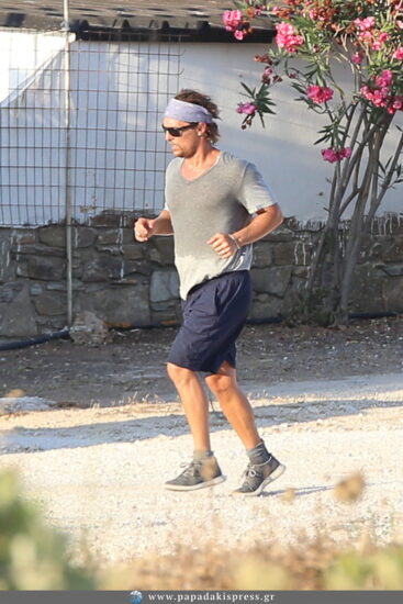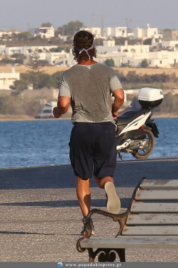 Στην Αντίπαρο, έκανε πολλές βόλτες στα σοκάκια του νησιού, ενώ σταματούσε πολλές φορές για να μιλήσει με τους ντόπιους, δείχνοντας πόσο απλός και ακομπλεξάριστος είναι. Απαραιτήτως όμως αφιέρωνε χρόνο και για την καθημερινή του αγαπημένη συνήθεια, το τζόκινγκ. Ο φωτογραφικός μας φακός τον εντόπισε ενώ αθλούνταν στην παραλία αλλά και τα χωμάτινα δρομάκια του νησιού, ενώ χαιρετούσε και όσους τον αναγνώριζαν.