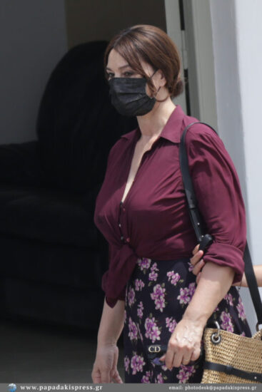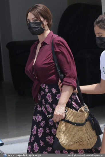 Ντυμένη με μπορντώ πουκάμισο και μακριά floral φούστα, έχοντας τα μαλλιά της πιασμένα, η Μόνικα Μπελούτσι ήταν απέριττη και εντυπωσιακή.