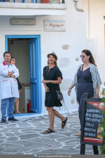 Ο φωτογραφικός μας φακός την εντόπισε σε μια χαλαρή βόλτα να χαίρεται την ηρεμία και την ομορφιά του νησιού, ενώ δεν παρέλειψε να μας χαρίσει το λαμπερό της χαμόγελο και να μας χαιρετήσει.