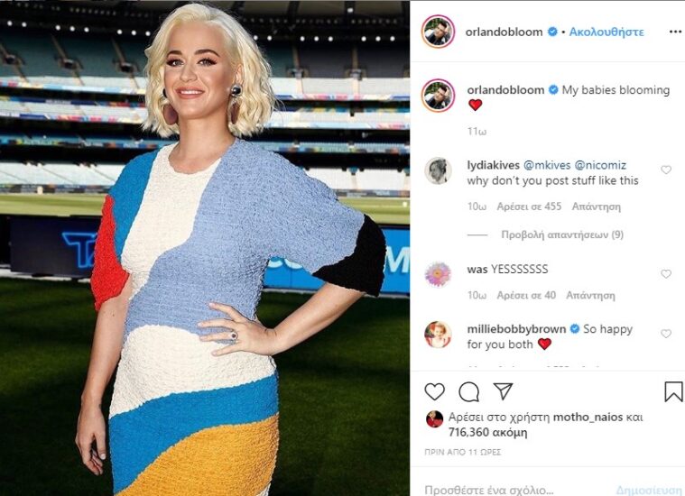 Ο Orlando Bloom δηλώνει ευτυχισμένος, διότι πρόκειται να γίνει πατέρας! Μάλιστα έκανε την πρώτη του ανάρτηση στο instagram για την εγκυμοσύνη της αγαπημένης του, Katy Perry.