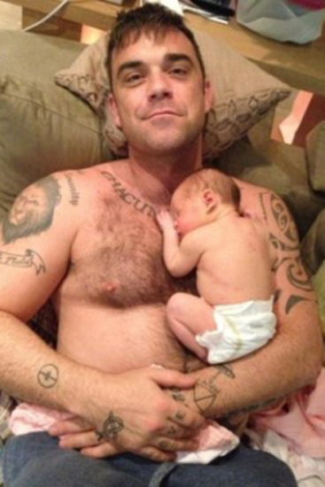 O Robbie Williams δεν δίστασε μάλιστα να ανεβάσει στο internet και μια φωτογραφία που τον δείχνει να την κρατά στην αγκαλιά του.