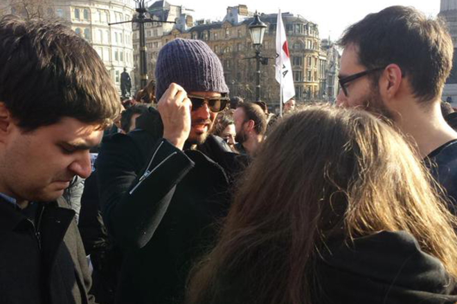 Αυτήν τη φορά, ο πρώην σύζυγος της Katy Perry βρέθηκε στην πρώτη γραμμή των διαδηλώσεων που έγιναν στην πλατεία Trafalgar για τη στήριξη του αγώνα του ελληνικού λαού.