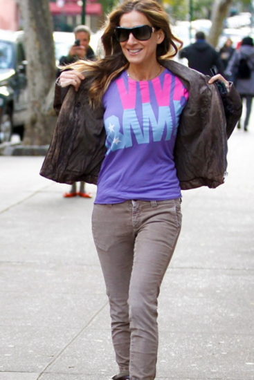 Από τις πλέον φανατικές οπαδούς του Barack Obama, η Sarah Jessica Parker δεν μπορεί να κρύψει τη χαρά της για την επανεκλογή του και το δείχνει και με το «Viva Obama» t-shirt της.