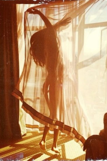 Πρόκειται ουσιαστικά για μια ιδιαίτερα αισθησιακή φωτογραφία, στην οποία τη βλέπουμε να ποζάρει σχεδόν γυμνή, πίσω από μια κουρτίνα η οποία… θολώνει αρκετά το τοπίο!