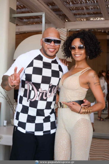 Η γνωστή τραγουδίστρια, βρίσκεται στο νησί των ανέμων για εμφανίσεις και είχε την ευκαιρία να γνωρίσει από κοντά τον Flo Rida. Ο γνωστός dj και δημιουργός μεγάλων επιτυχιών, κάνει διακοπές στη Μύκονο, ωστόσο δεν ξεχνά την ιδιότητά του ως μουσικός και επισκέπτεται club και μουσικές σκηνές για να διασκεδάσει.