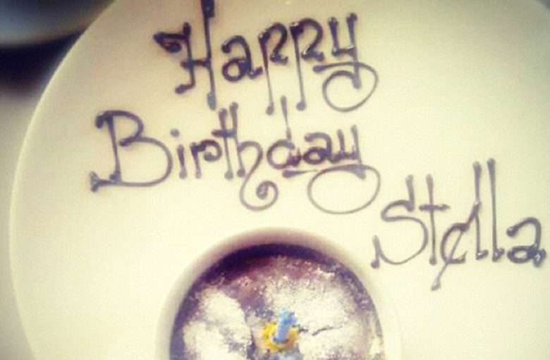 Μάλιστα έσβησε το κεράκι της στο σουφλέ σοκολάτας που με αυτό τελείωσαν το γεύμα τους . Η Stella τουίταρε φωτογραφία της αυτοσχέδιας τούρτας γενεθλίων της γράφοντας:”Girls Virgo Lunch, happy day! X stella.” ( Κορίτσια Παρθένοι, χαρούμενη μέρα! Χρονια Πολλά stella)