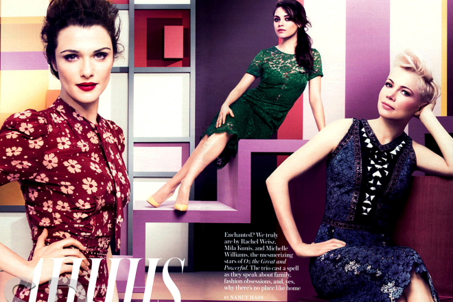 Οι πανέμορφες Rachel Weisz, Michelle Williams και Mila Kunis, φωτογραφίζονται για την αμερικανική έκδοση του περιοδικού για το τεύχος Μαρτίου και μιλούν για τη συμμετοχή τους στην πολυαναμενόμενη ταινία φαντασίας “Oz: The Great and Powerful” η οποία έρχεται στις ελληνικές αίθουσες στις 7 Μαρτίου.