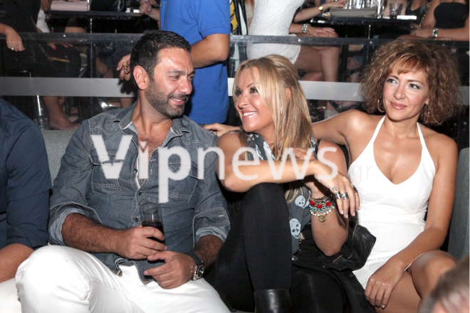 Η Ναταλία Γερμανού, ντυμένη απλά, κάθισε σε ένα από τα πρώτα τραπεζάκια του μαγαζιού και απόλαυσε το πρόγραμμα μαζί με τον Μιχάλη Μαρίνο και την Ηρώ Λούπη.
