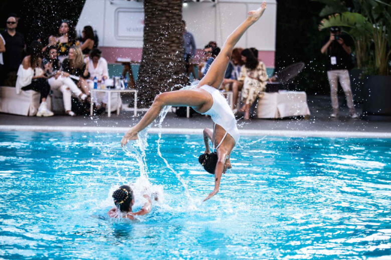 Με έμφαση στη γεωμετρία και συνδυάζοντας τον μινιμαλισμό με τον αισθησιασμό η Eva Varakis και τα Sognare Swimwear «πάντρεψαν» υπέροχα το sporty με το sexy. Τα It’s All Greek On Me της Ειρήνης Χαλκιά «αφηγήθηκαν» συναρπαστικές ιστορίες με έμπνευση από την Ελλάδα, τους μύθους και τις παραδόσεις της. Η Δώρα Χαραλαμπάκη με τα diko Kaftans συνταίριαξε εντυπωσιακά τα έντονα χρώματα με τη γραμμικότητα σε κομμάτια μινιμαλιστικής αισθητικής. Η Ειρήνη Καρουζάκη με τo brand Maritimum συνδύασε τις επιρροές από την κρητική της καταγωγή με εικόνες και εμπειρίες από τα ταξίδια της ανά τον κόσμο. Στα διαλείμματα των επιδείξεων η ομάδα συγχρονισμένης κολύμβησης Naiads εντυπωσίασε τους καλεσμένους με ευφάνταστες χορογραφίες στους ρυθμούς αγαπημένων τραγουδιών.