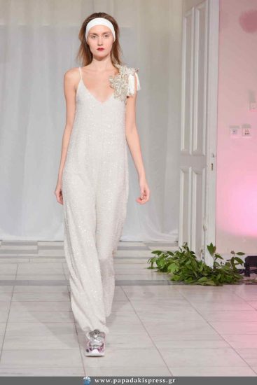 HARRIS MITSIOPOULOS Με τη συλλογή Feel – Free ο Harris Mitsiopoulos έβαλε την υπογραφή του και παρουσίασε την ανέμελη και εναλλακτική νύφη με υπέροχες δημιουργίες, που είχαν ταυτότητα, ιδιαίτερο design και ύφος. Παντελόνες από ολομέταξη οργκάντζα, φορέματα με λεπτομέρειες από ντραπέ μουσελίνες, ασπρόμαυρες ιδέες και φλατ χρυσά υποδήματα χαρακτήριζαν την συλλογή.