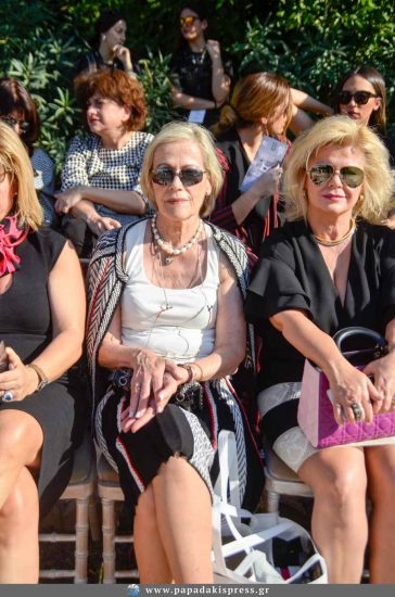 Οι βραδινές τουαλέτες, τα κοκτέιλ φορέματα, οι θεατρικές λεπτομέρειες και τα φίνα υφάσματα όπως μετάξι και δαντέλες, τα οποία επέλεξε ο Βασίλης Ζούλιας, συνδυασμένα με το υπέροχο φυσικό τοπίου του κήπου, άφησαν τις καλύτερες εντυπώσεις.