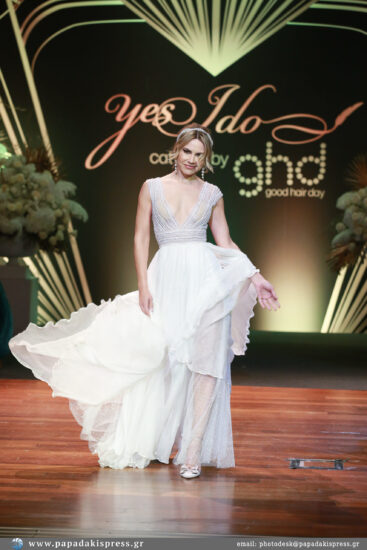 To show άνοιξε η εντυπωσιακή Έβελυν Καζαντζόγλου, το cover girl του νέου Yes I Do Freepress, φορώντας νυφικό Atelier Loukia, ενώ την αυλαία έκλεισε η Ευαγγελία Αραβανή με δημιουργία του σχεδιαστή Dimitris Petrou και κοντό καρέ χτένισμα που θύμιζε την πρωταγωνίστρια της κινηματογραφικής ταινίας Great Gatsby.