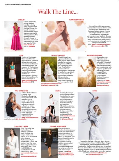Διεθνή έντυπα πρώτης γραμμής όπως το Vanity Fair και το Bazzar φιλοξενούν στις σελίδες τους την Υβόννη Μπόσνιακ, σε ρόλο σχεδιάστριας και όχι μοντέλου.
