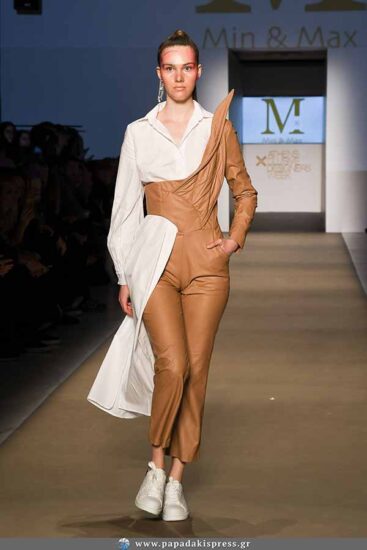 Βest Trendsetter: Η Μύρια Οικονόμου με το brand Min&Max με μια συλλογή που συνδυάζει τα φαρδιά ρούχα και τους μεγάλους όγκους με την κομψότητα και την λεπτομέρεια. Στην πασαρέλα παρουσιάστηκαν ζεστά υφάσματα από μαλλί με δημιουργικούς συνδυασμούς χρωμάτων.