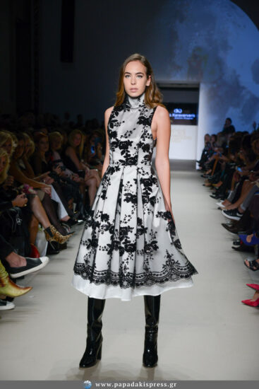 Μεταξωτά υφάσματα, glitter, βελούδα και περίτεχνες δαντέλες συνδυασμένα με ιδιαίτερη φαντασία σε δημιουργίες που ολοφάνερα εντυπωσίασαν τους πάνω από 450 φίλους και πελατες της σχεδιάστριας. Το styling των μοντέλων επιμελήθηκε ο Δημήτρης Γραμματικογιαννάκης και την μουσική του show η εταιρεία Music Vibes. Τα εντυπωσιακά κομμάτια της συλλογής ‘ECLIPSE ’ συνδυάστηκαν με τα ξεχωριστά κοσμήματα Iordanis Jewelry, τα γυαλιά ήταν από τα Οπτικά Φλεβαράκη και τα παπούτσια της εταιρείας Mara Shoes. Τα δώρα των καλεσμένων επιμελήθηκε η εταιρεία JK events και τα γλυκίσματα η εταιρεία Vourlos Confetti. Χορηγοί της επίδειξης ήταν οι εταιρείες Pacific Sun Solarium, INTRO – Papadatos about a sofa και το Glaucoma Laser Eye Center και Cocomat Hotel. Χορηγός επικοινωνίας: vipnews.gr