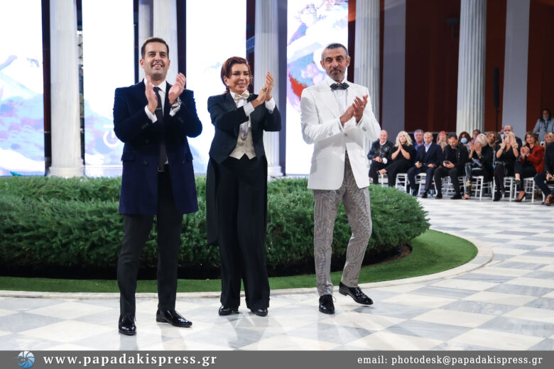 Την επίδειξη έκλεισε η Μιμή Ντενίση, απαστράπτουσα με φράκο δια χειρός Giannetos και απόσπασε το πιο θερμό χειροκρότημα!