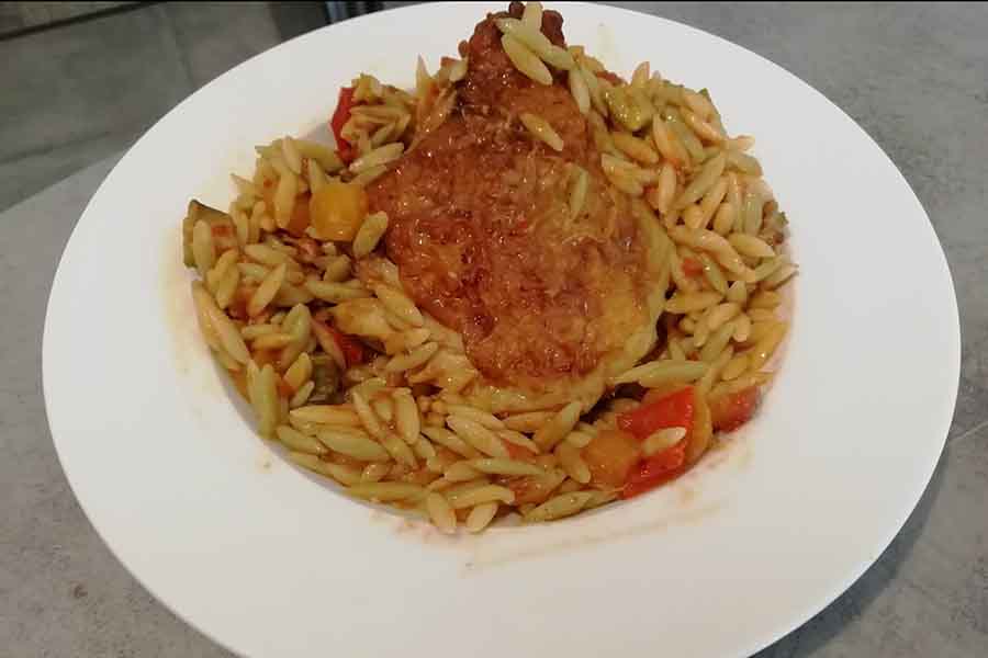 • 1 μέτριο κοτόπουλο, βάρους περίπου 1.500 γρ., κομμένο σε κομμάτια/μερίδες