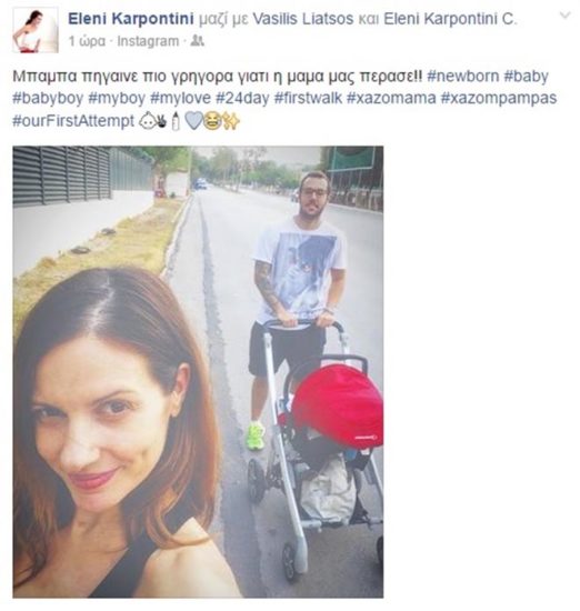 Το ζευγάρι μας έδειξε με τη φωτογραφία που δημοσίευσε στο Instagram, ότι πήρε το λίγων ημερών μωρό του με τον καρότσι και βγήκαν βόλτα στους δρόμους.
