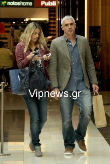 Ο φωτογραφικός φακός απαθανάτισε τον Αντώνη Νικοπολίδη μαζί με τη γυναίκα του Βάσω να συνδυάζουν βόλτα και ψώνια στο Golden Hall.