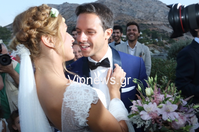 Το μυστήριο τελέστη στον Ιερό Ναό της Παναγίας Καταφυγιώτισσας στο Θυμάρι της Παλαιάς Φώκαιας, ενώ κουμπάροι του ζευγαριού ήταν η Νάντια Κοντογεώργη, ο Λάμπρος Φισφής και ο Κωνσταντίνος Καΐκης.