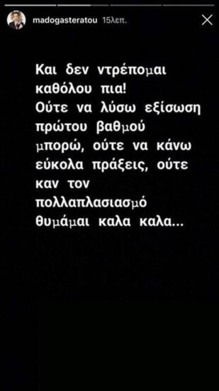Μια αποκάλυψη αποφάσισε να κάνει η Μαντώ Γαστεράτου μέσα από τον προσωπικό της λογαριασμό στο Ιnstagram.