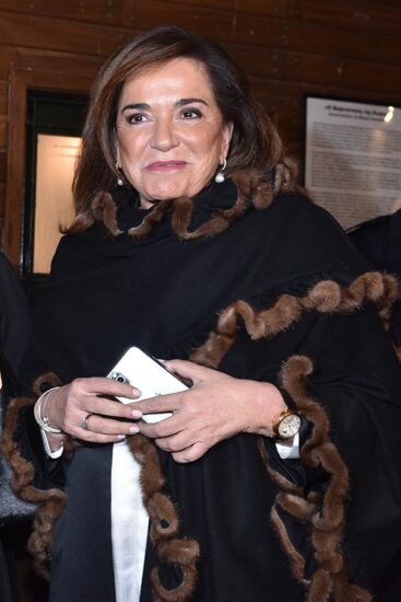 Χαμογελαστή κι ευδιάθετη, η Ντόρα Μπακογιάννη συνομίλησε με αρκετούς από τους παρευρισκόμενους, ενώ έκανε αίσθηση με την κομψή και σικάτη της εμφάνιση.