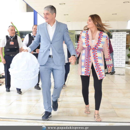 Κατά την έξοδό του από το μαιευτήριο, το ζευγάρι ευχαρίστησε το γυναικολόγο- μαιευτήρα Ευάγγελο Δεδούση και το προσωπικό και αφού με χαρά πόζαραν για τις καθιερωμένες φωτογραφίες, κατευθύνθηκε προς το σπίτι του, όπου περίμεναν και τα άλλα δύο παιδιά της οικογένειας.