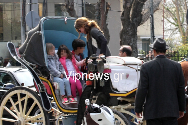 Στη συνέχεια, ο Άγγελος Μπασινάς και η σύζυγός του δεν μπόρεσαν να αντισταθούν στα παρακάλια των κοριτσιών και, ως καλοί γονείς, δεν χάλασαν το χατίρι στα παιδιά τους και τα πήγαν μια βόλτα και με τις παραδοσιακές άμαξες.