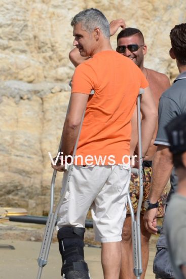 Ο Άρης Σπηλιωτόπουλος, παρότι φορούσε τον νάρθηκα και χρησιμοποιούσε πατερίτσες, δεν δίστασε να περπατήσει στην ακρογιαλιά, βοηθούμενος από τους φίλους του, ενώ αμέσως μετά όλη η παρέα γευμάτισε σε εστιατόριο της περιοχής.