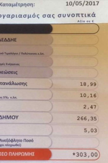 Μα φυσικά ο λογαριασμός που έλαβε και την έκανε να αγανακτήσει. «ΔΕΗ σε κλειστό σπίτι, κατανάλωση 18,99€ και χρεώσεις Δήμου 266,35. Με εγκεφαλικά να σέρνονται», έγραψε σε λεζάντα που συνόδευε φωτογραφία του λογαριασμού της ΔΕΗ που παρέλαβε.