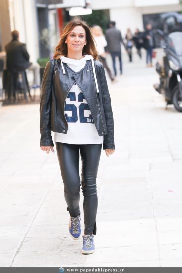 Η Έλλη Κοκκίνου, η οποία ακόμη και στις καθημερινές της εξόδους, κάνει προσεγμένες εμφανίσεις, εντυπωσίασε με το άψογο, casual ντύσιμό της, για το οποίο επέλεξε δερμάτινο jacket και παντελόνι, το οποίο συνδύασε με ένα άσπρο φούτερ.