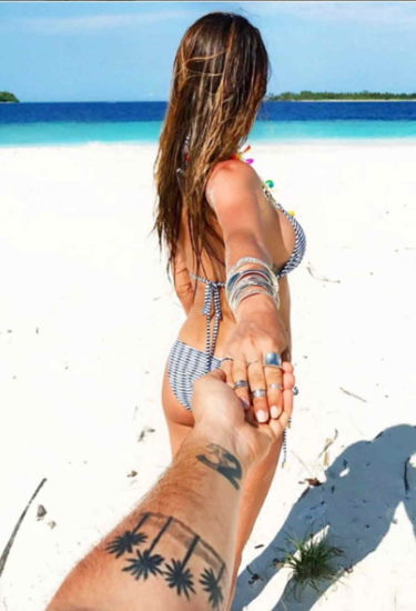 Η γνωστή ηθοποιός δημοσίευσε στον προσωπικό της λογαριασμό στο Instagram μία φωτογραφία από τις πρόσφατες διακοπές της στις Μαλδίβες με τον σύντροφό της Φίλιππο Μιχόπουλο. Η Αθηνά ποζάρει με ένα ριγέ μπικίνι, καθώς κρατάει το χέρι του αγαπημένου της, τον οποίο καλεί να την ακολουθήσει.