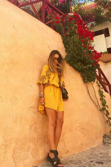 Η Σαντορίνη, άλλωστε, είναι ένας από τους αγαπημένους της προορισμούς στο Αιγαίο και κάθε χρόνο, επιλέγει να κάνει με τον σύντροφό της ένα πέρασμα από το νησί. Η Αθηνά φωτογραφήθηκε στα σοκάκια της Σαντορίνης με τα αγαπημένα αξεσουάρ της προσωπικής της συλλογής και εντυπωσίασε με το καλλίγραμμο κορμί της, για το οποίο οι φίλοι της στα social media έγραφαν μόνο κολακευτικά σχόλια.