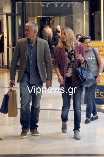 Ο φωτογραφικός φακός απαθανάτισε τον Αντώνη Νικοπολίδη μαζί με τη γυναίκα του Βάσω να συνδυάζουν βόλτα και ψώνια στο Golden Hall.