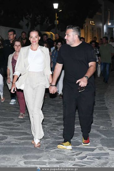 Στα στενά δρομάκια της Μυκόνου περπατούσαν πιασμένοι χέρι-χέρι ο Αντώνης Ρέμος και η Υβόννη Μπόσνιακ όταν τους συνάντησε ο φωτογραφικός μας φακός.