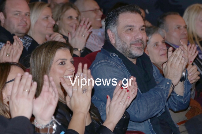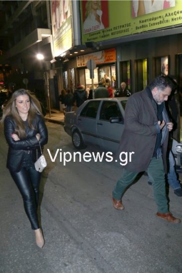 Ο παρουσιαστής και η σύντροφός του έφθασαν στο θέατρο ντυμένοι κομψά και έδειχναν να απολαμβάνουν την παράσταση χειροκροτώντας θερμά τους πρωταγωνιστές και γελώντας με τις ατάκες και τα αστεία τους. Στο τέλος, πήγαν στα καμαρίνια για να συγχαρούν τους ηθοποιούς Σπύρο Πούλη, Σπύρο Σπαντίδα, Πηνελόπη Πλάκα και Κώστα Αποστολάκη.