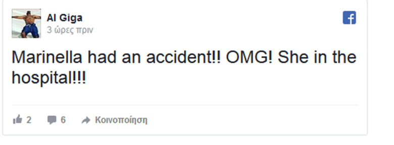 Στο νοσοκομείο βρίσκεται η Μαρινέλλα μετά από ατύχημα που είχε πριν λίγες ώρες στο κέντρο που εμφανίζεται.