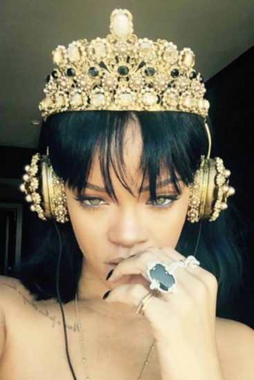 Η 27χρονη super star μάλιστα συνδύασε τα χρυσά της ακουστικά με ένα στέμμα που φέρει την υπογραφή των Dolce & Gabanna, κι όλα αυτά μια ανάσα πριν κυκλοφορήσει το νέο της album με τον τίτλο «ANTI».