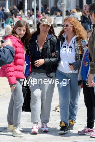 Μητέρα και κόρη, περπάτησαν τα στενάκια της Μυκόνου ντυμένες με φόρμες και φορώντας αθλητικά παπούτσια και συχνά σταματούσαν για να χαιρετήσουν και να συνομιλήσουν με φίλους και γνωστούς, μεταξύ των οποίων ήταν ο Αl Giga και ο Μάκης Τσέλιος.