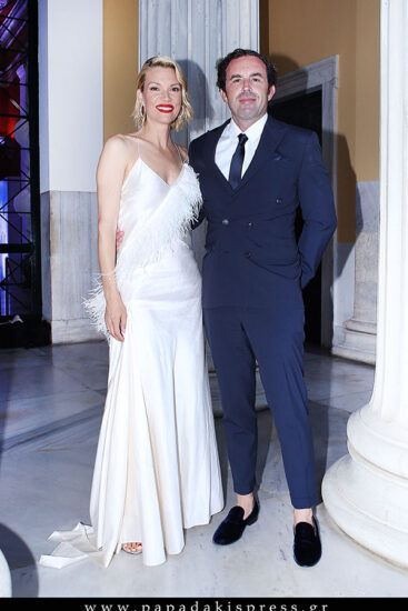 Το αγαπημένο ζευγάρι, έκανε όλα τα φλας να στραφούν πάνω του, με τις εντυπωσιακές στυλιστικές του επιλογές, με την παρουσιάστρια να λάμπει στο αστραφτερό της φόρεμα και το σύζυγό της να τη συνοδεύει με ένα μοντέρνο και κομψό, μπλε κουστούμι.