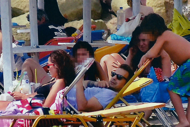 Έτσι, μετά τον Σαρωνικό και τις Κυκλάδες, ταξίδεψαν αεροπορικώς από την Αθήνα στη Μυτιλήνη. Ο φωτογραφικός φακός του περιοδικού «ΟΚ!» απαθανάτισε την οικογένεια την στην παραλία της Πέτρας, που βρίσκεται αρκετά κοντά στον Μόλυβο, να απολαμβάνει τον ήλιο και τη θάλασσα.