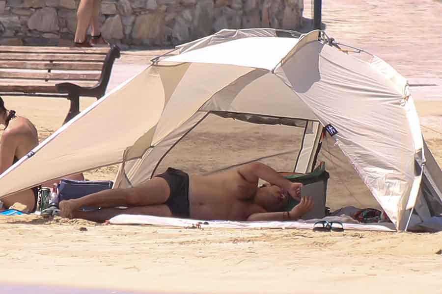 Το αγαπημένο ζευγάρι, με τις σπάνιες δημόσιες εξόδους, επέλεξε τα εναλλακτικά Κουφονήσια επιλέγοντας να είναι μακριά από τις κοσμικότητες. Ο φωτογραφικός μας φακός τους συνάντησε σε παραλία του νησιού, να έχουν στήσει τη σκηνή τους και να απολαμβάνουν έτσι τον ήλιο και την υπέροχη θάλασσα. Σε αυτό το ειδυλλιακό σκηνικό, το ζευγάρι υπέκυψε στη χρήση των κινητών τηλεφώνων για μερικές selfies που θα είναι και οι καλύτερες αναμνήσεις από τους φετινό τους καλοκαίρι.